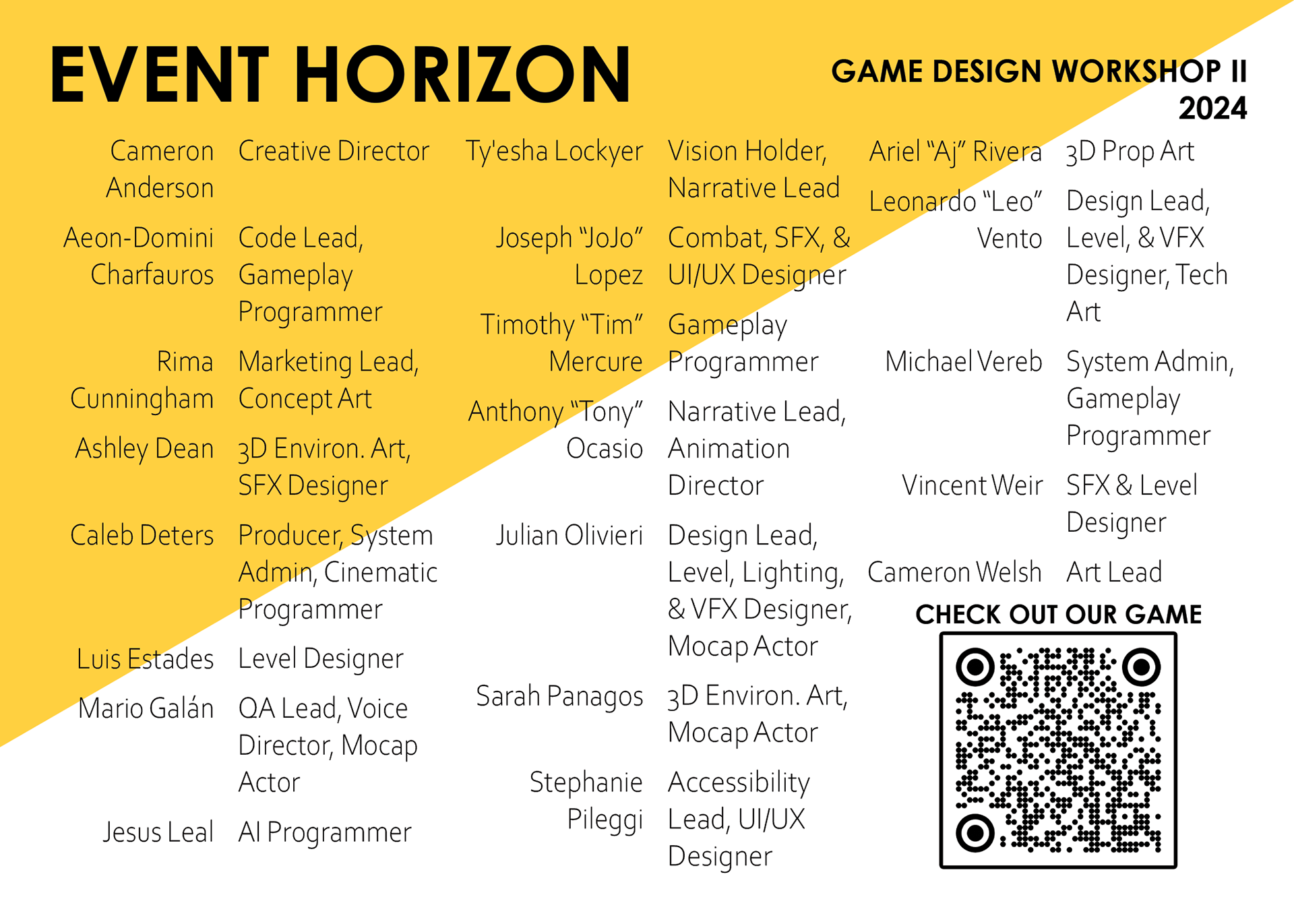 TOOLS: Unity, Github, ClickUp, Audacity, Adobe Premiere, Adobe After Effects, Adobe Illustrator, Microsoft Office, Google Drive.